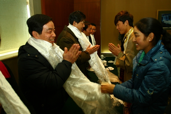 来自学校和酒店党政领导及老师们,正在为西藏班学生举行新年慰问、师生联谊活动。联谊会上,学校党委书记王金涛作了热情洋溢的讲话,他充分肯定了西藏班学生一个学期以来苦刻苦学习、勤奋实习、团结友爱、共同发展的良好表现,激励同学们更加珍惜机会,强化专业知识,进一步学好基本功,为建设家乡作贡献。校长金玉书代表全校教职工为全体西藏师生发放了慰问金,祝贺他们新年快乐。金权宝董事长代表虞城大酒店为全体西藏师生赠送了节日慰问品。